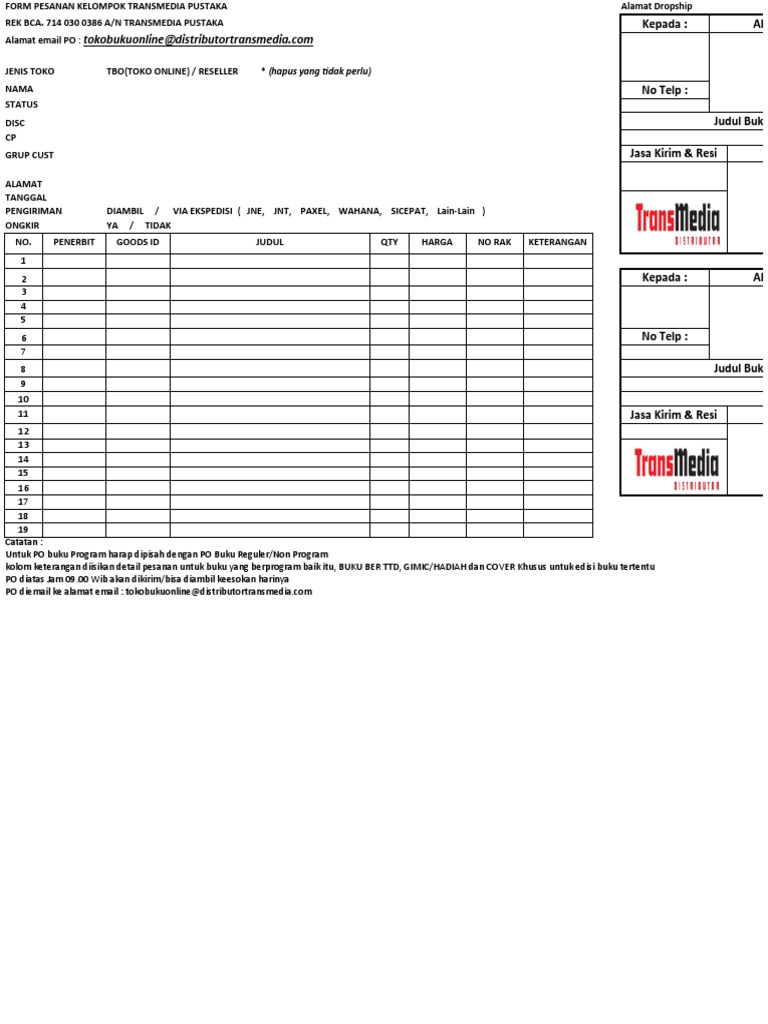 Form Order Dan Master Judul Buku Pdf